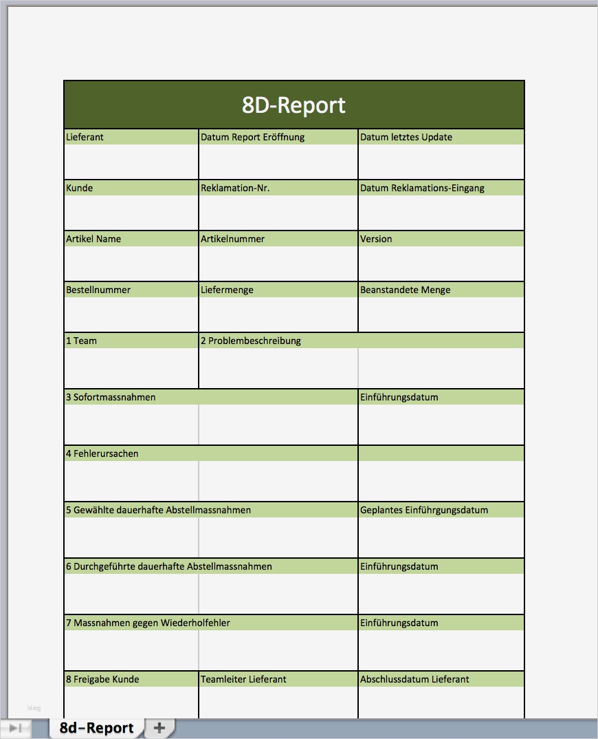 4d Report Vorlage Elegant 8d Report Als Excelvorlage