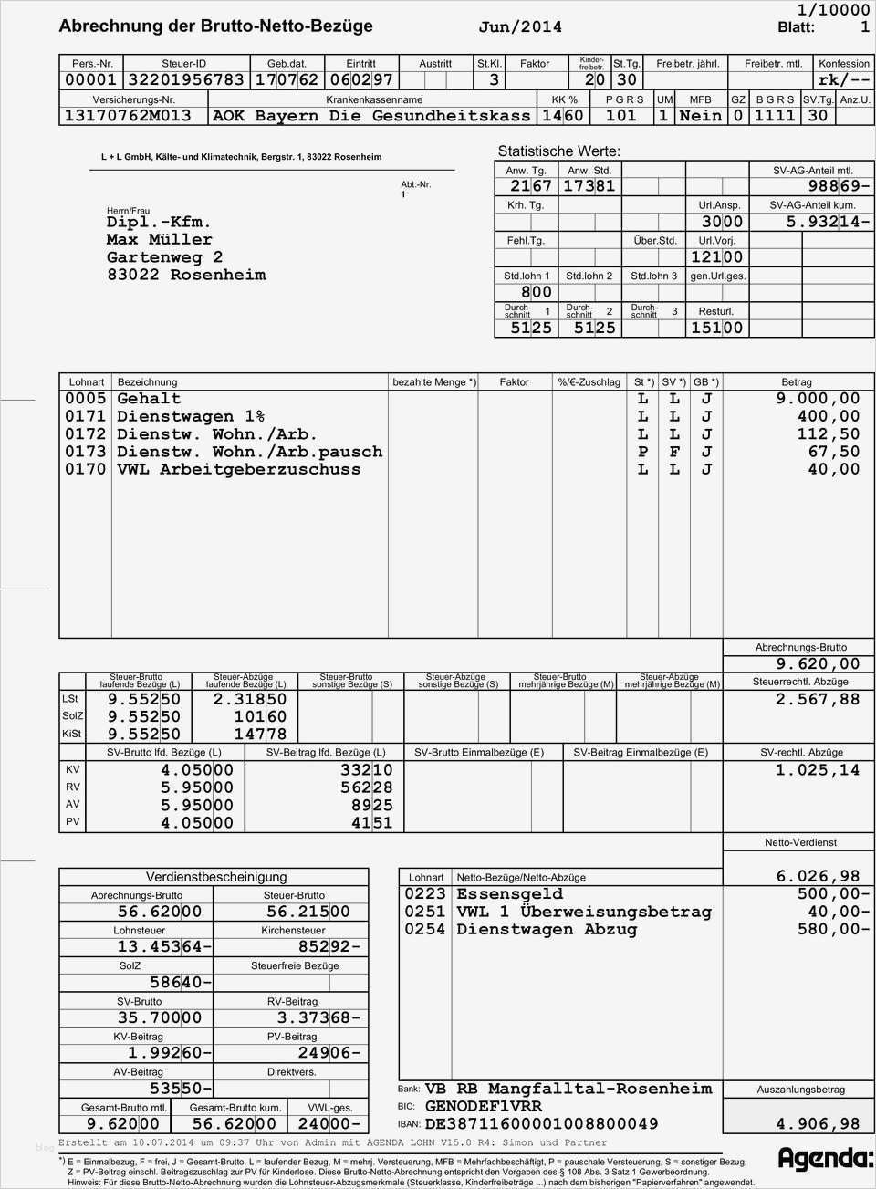Erstaunlich Abrechnung Brutto Netto Bezüge Vorlage