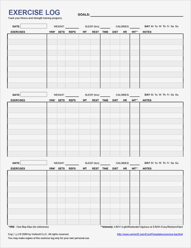Anamnesebogen Personal Training Vorlage Luxus Free Printable Exercise Log Pdf From Vertex42