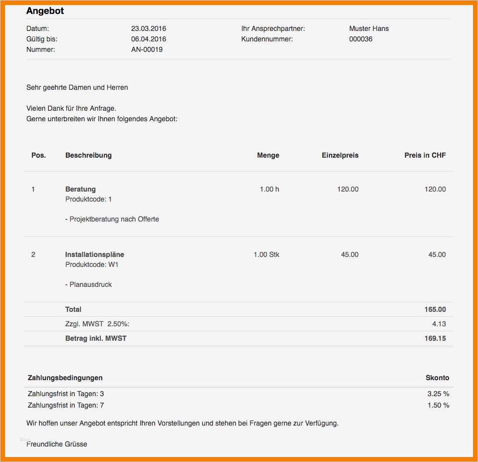 Angebot Freelancer Vorlage Wunderbar 9 Offerte Muster