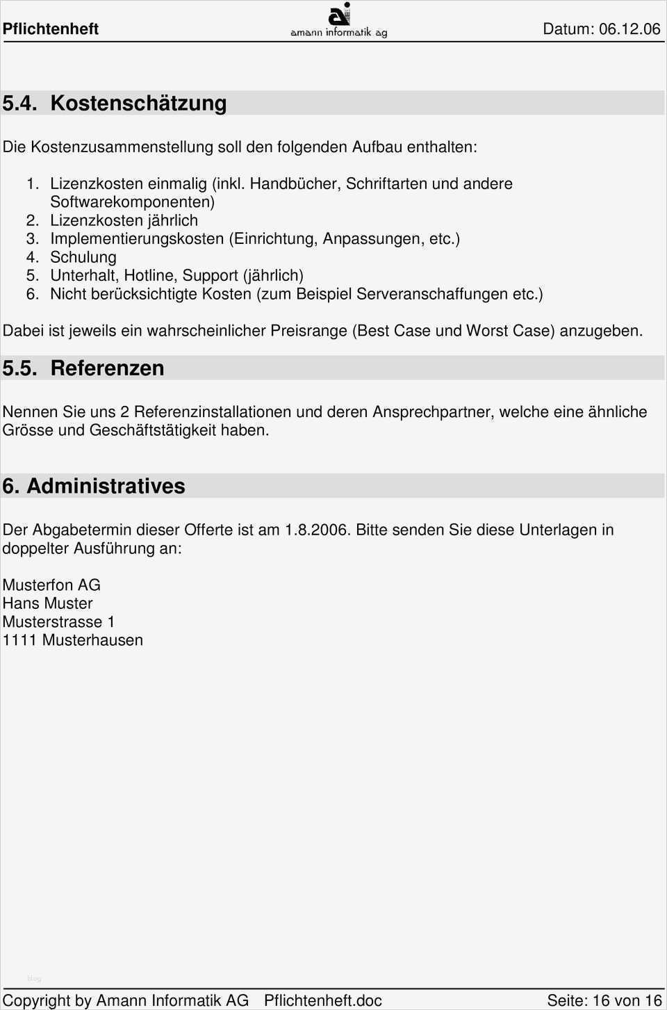 Angebot Vorlage Doc Süß Vorlage Pflichtenheft Für Evaluation Einer Erp