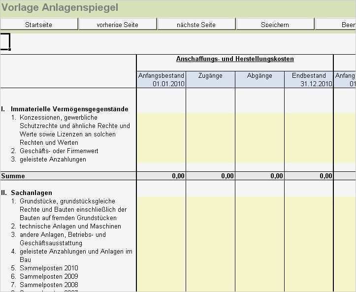 Einzigartig Anlagenspiegel Excel Vorlage