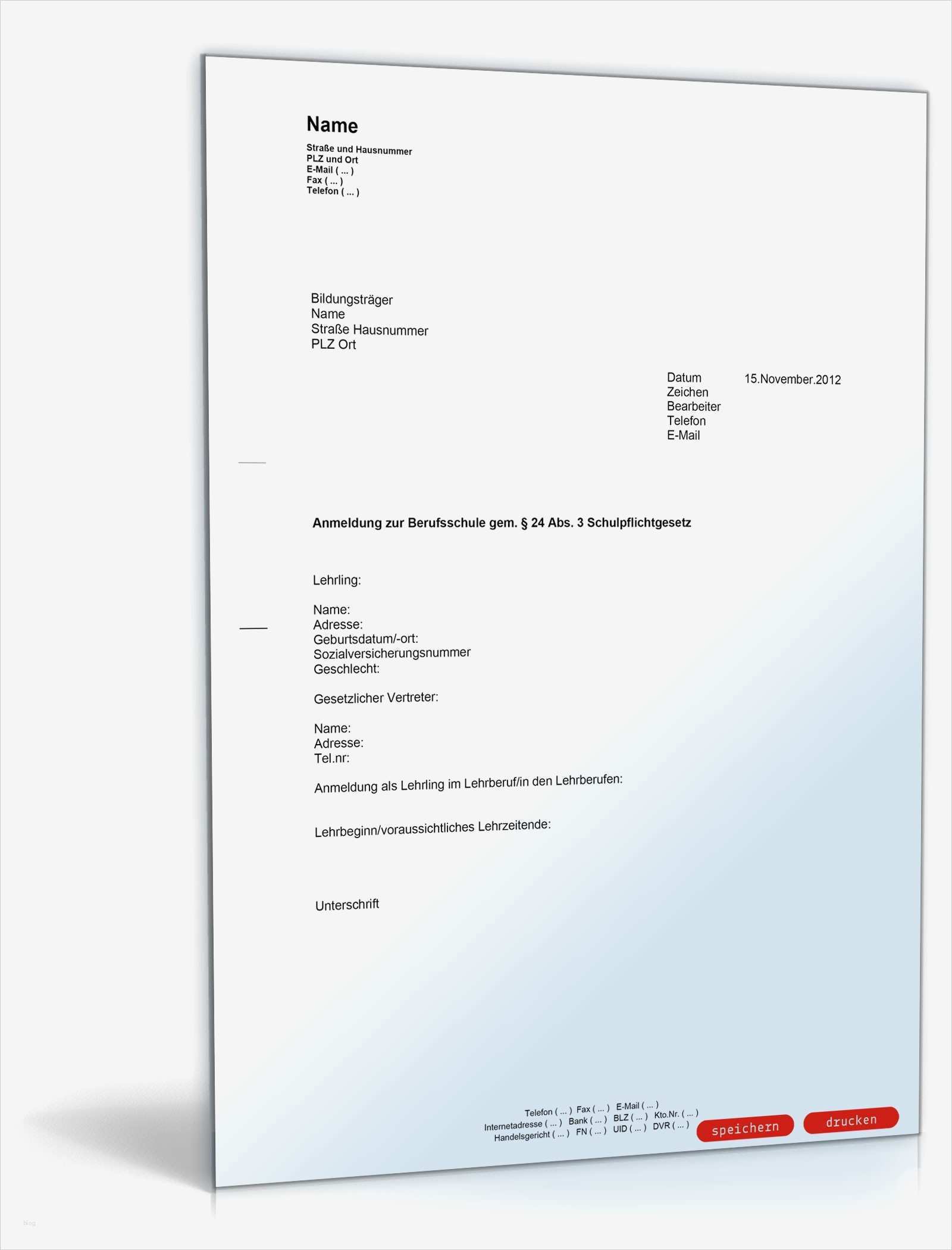 Anmeldung Kindergarten Vorlage Süß Anmeldung Eines Lehrlings Zur Berufsschule Muster