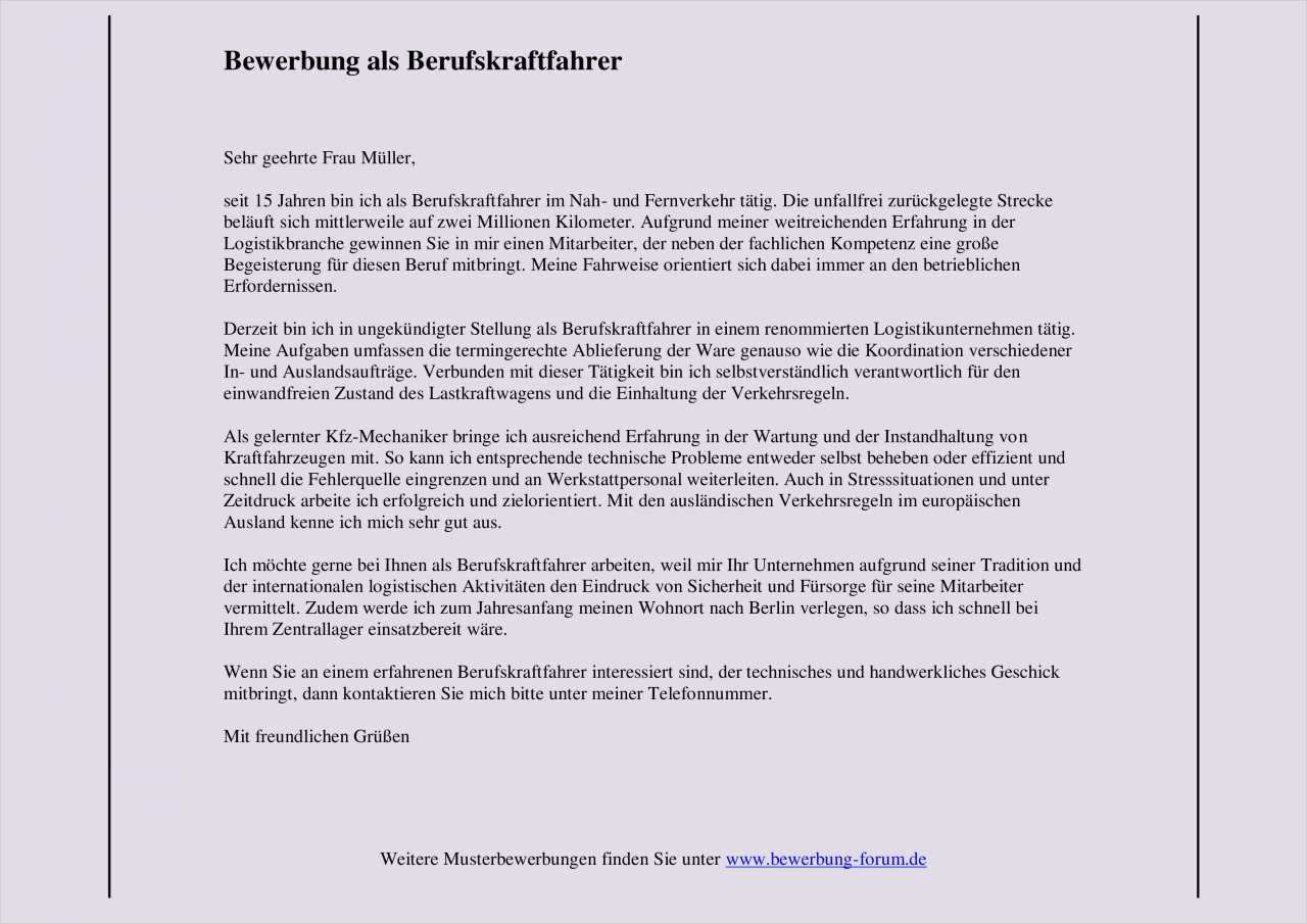 Anschreiben Bewerbung Vorlage Quereinsteiger Erstaunlich Initiativbewerbung Anschreiben Als Berufskraftfahrer