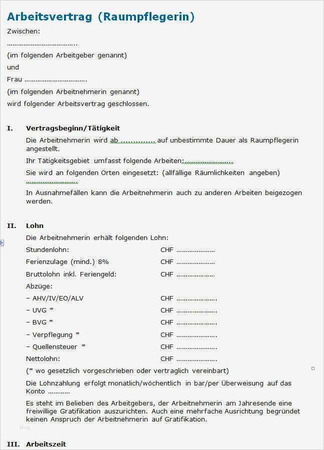 Galerie von Arbeitsvertrag Putzfrau Vorlage Best Of Arbeitsvertrag Putzfrau Muster Nach Schweizer Recht