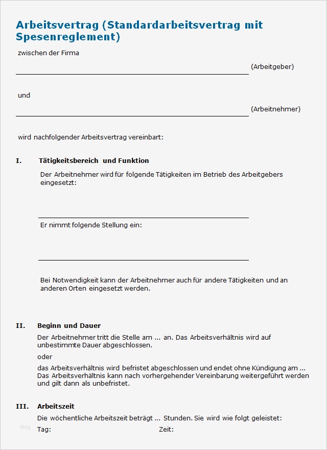 Arbeitsvertrag Vollzeit Unbefristet Vorlage Fabelhaft Arbeitsvertrag Mit Spesenreglement Vorlage Zum Download