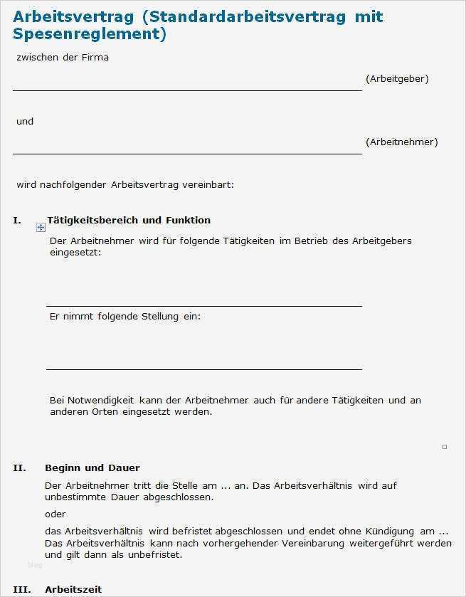 Arbeitsvertrag Vorlage Gut Arbeitsvertrag Mit Spesenreglement Vorlage Zum Download