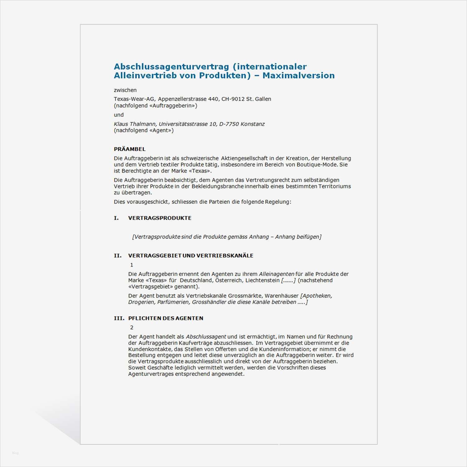 Architektenvertrag Vorlage Schönste Muster Agenturvertrag Alleinvertrieb