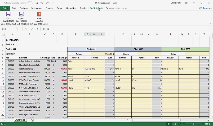Aufmaß Vorlage Hübsch Gaeb Ausschreibungen Excel Aufmaß Als Da11 Nach Reb 23