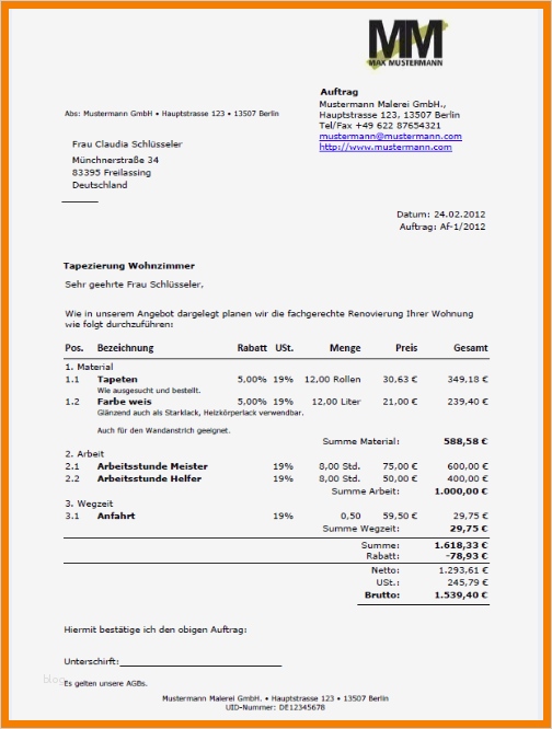 Erstaunlich Auftrag Erteilen Vorlage