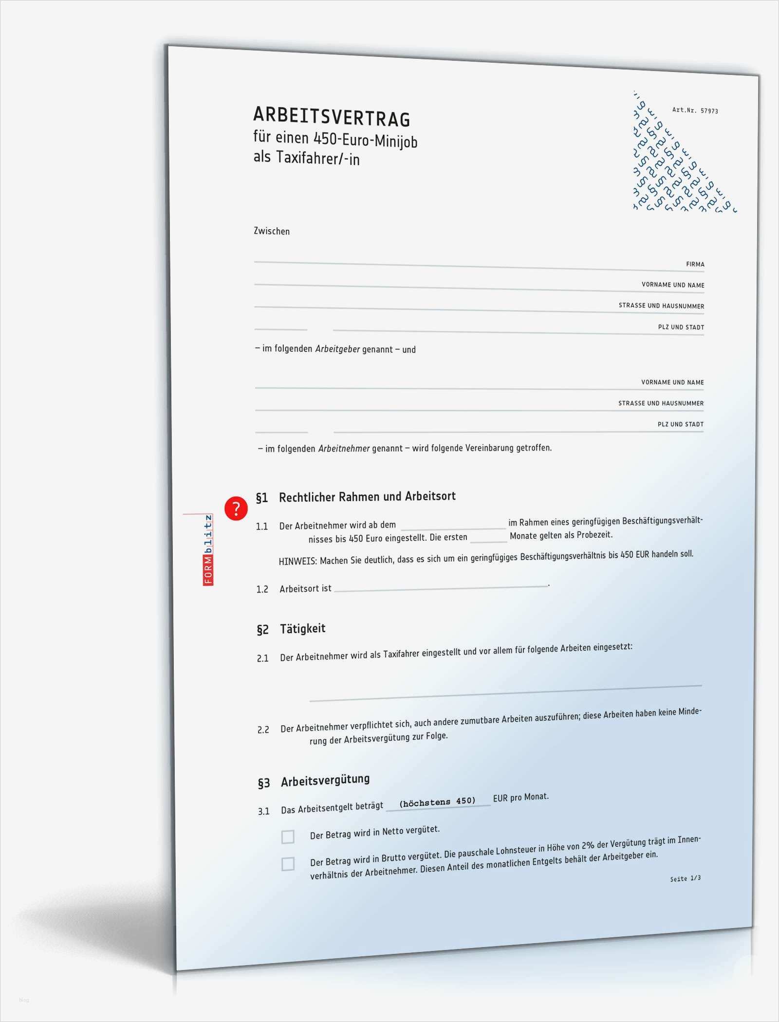 Aufzeichnungspflicht Minijob Vorlage Großartig Arbeitsvertrag Minijob Taxifahrer