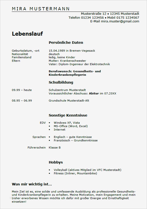 Ausbildung Lebenslauf Vorlage Best Of Bewerbung Gesundheits Und Kinderkrankenpflegerin