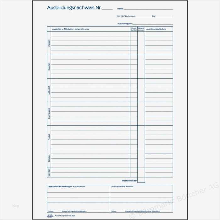 Elegant Ausbildungsnachweis Vorlage Pdf