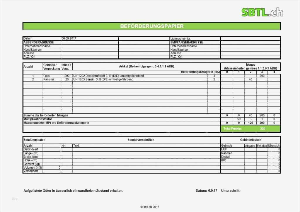 Wunderbar Beförderungspapier Adr Vorlage Download