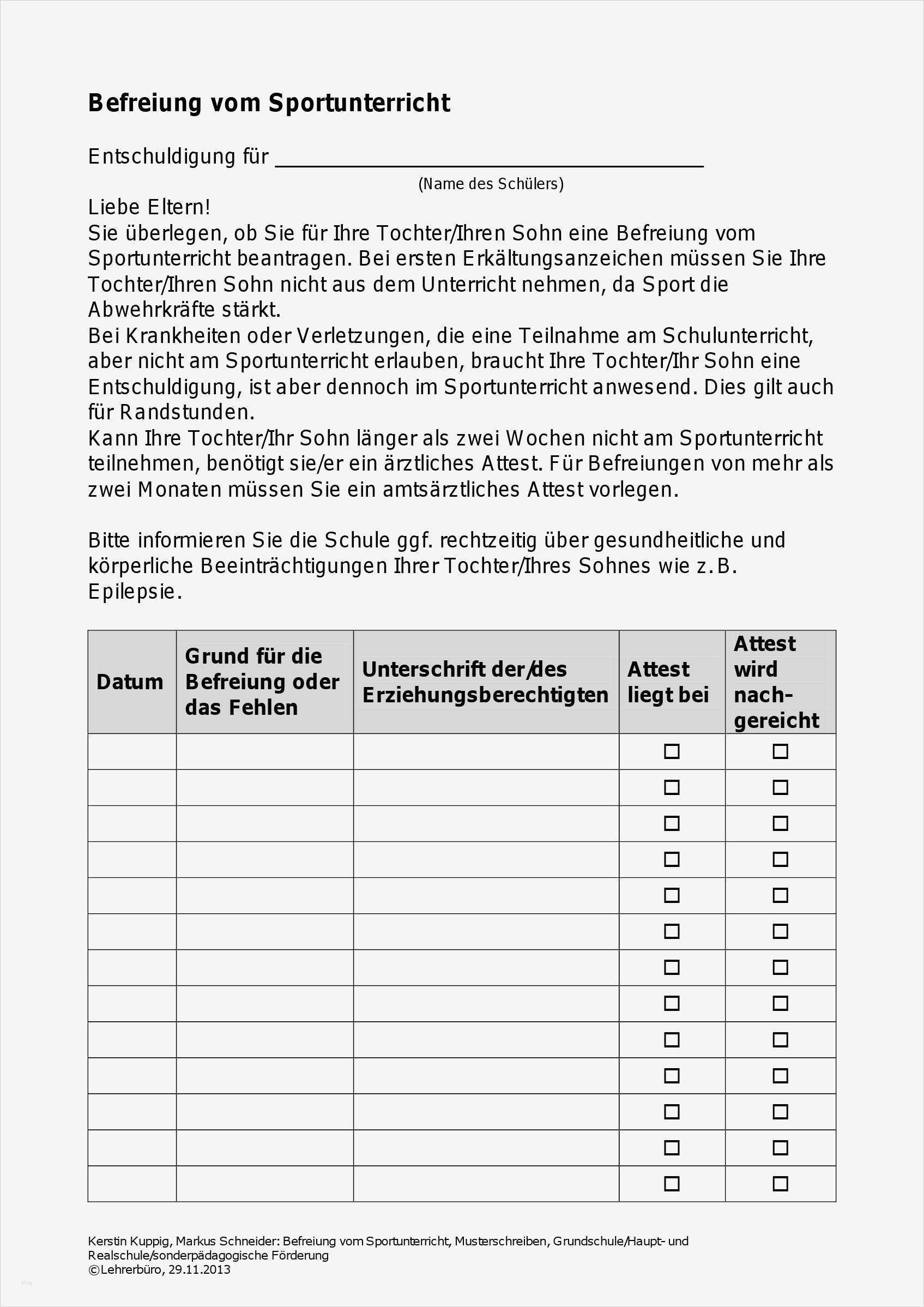 Erstaunlich Befreiung Vom Unterricht Vorlage