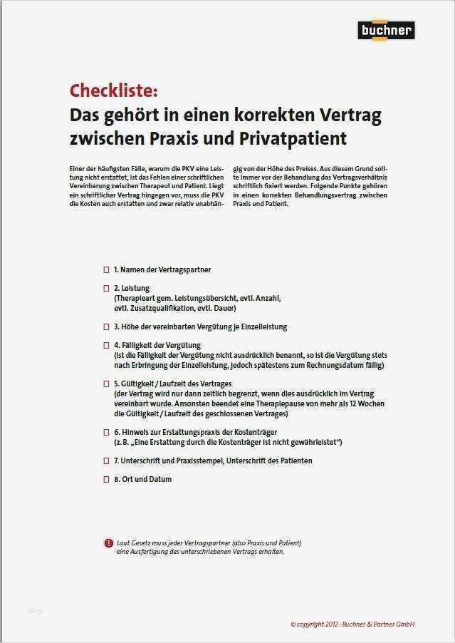 Befund Physiotherapie Vorlage Erstaunlich Checkliste Behandlungsvertrag Privatpatient
