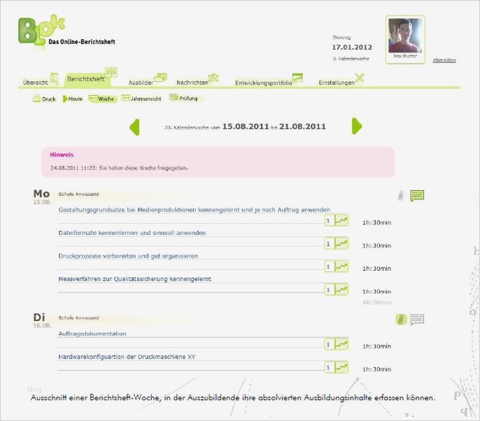 Süß Berichtsheft Online Vorlage