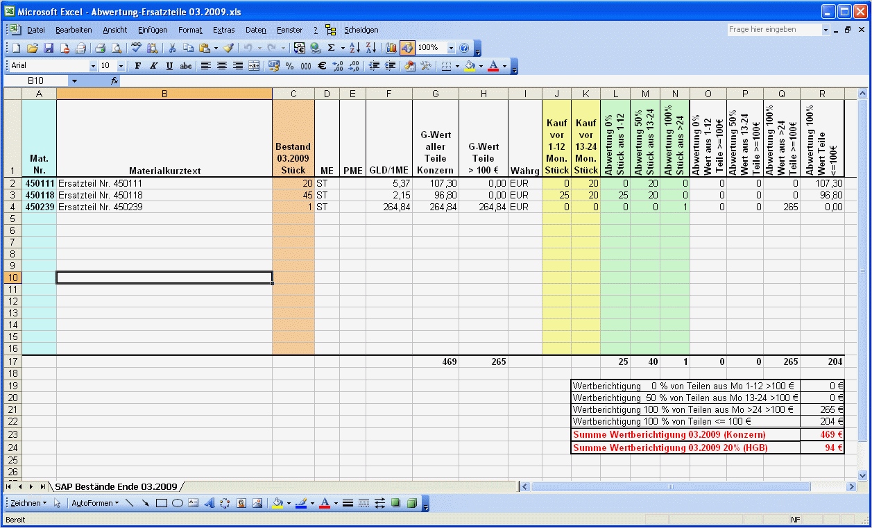Bestandsliste Excel Vorlage Bewundernswert Abwertung Nach Hgb Und Konzern