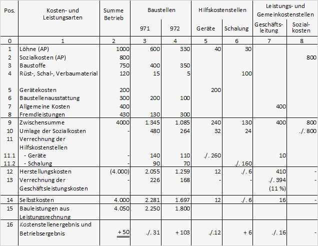 Gut Betriebsabrechnungsbogen Vorlage