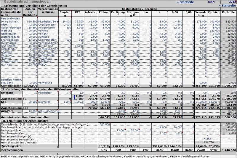 Gut Betriebsabrechnungsbogen Vorlage