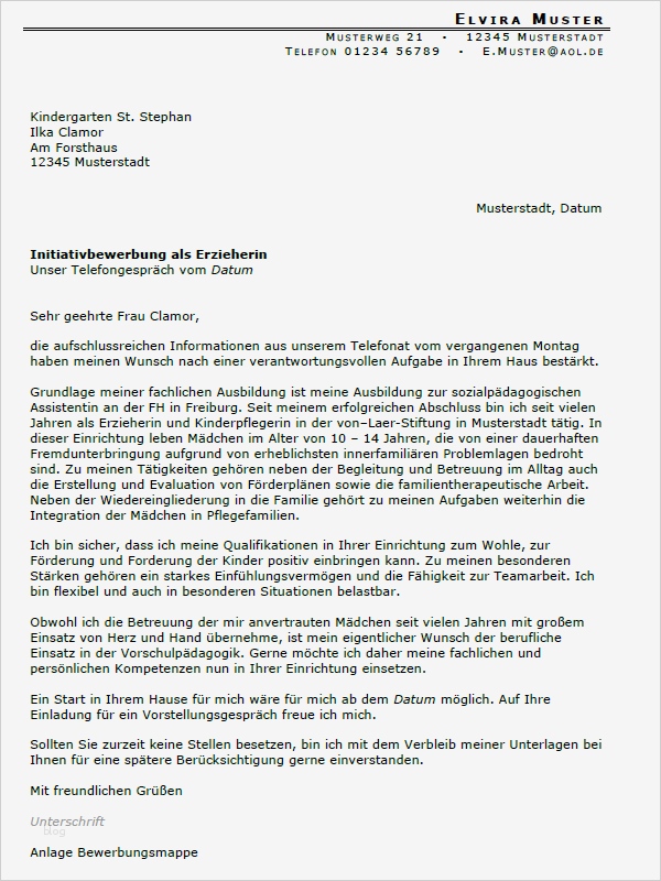 Inspiration Bewerbung Als Erzieherin Vorlage