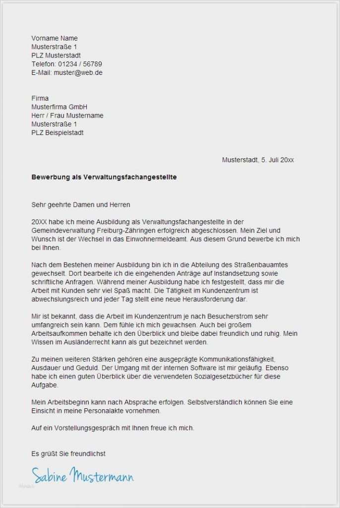 Bewerbung Bürokauffrau Ausbildung Vorlage Beste 46 Beste Bewerbung Ausbildung Verwaltungsfachangestellte