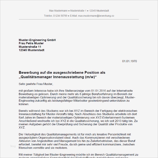 Bewerbung Qualitätsmanager Vorlage Einzigartig Bewerbung Als Qualitätsmanager Qualitätsmanagerin