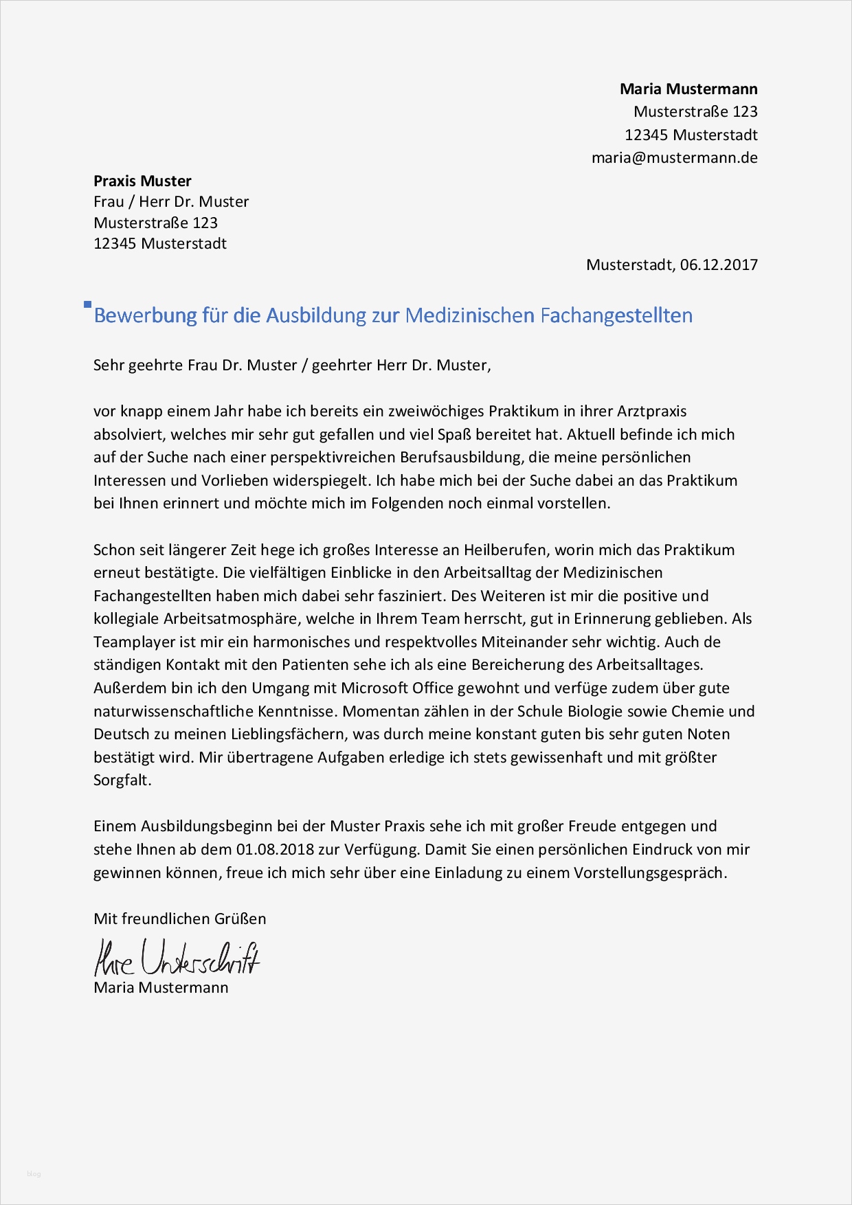 Fabelhaft Bewerbung Zur Medizinischen Fachangestellten Ausbildung Vorlage