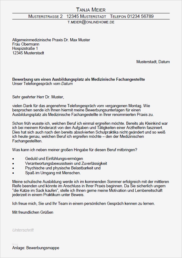 Fabelhaft Bewerbung Zur Medizinischen Fachangestellten Ausbildung Vorlage