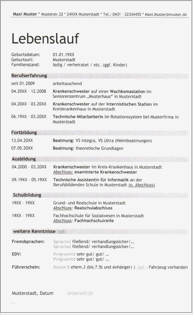 Bewerbungsschreiben Vorlage Krankenschwester Einzigartig 6 Lebenslauf Balken Krankenschwester Trebuchet Id 447