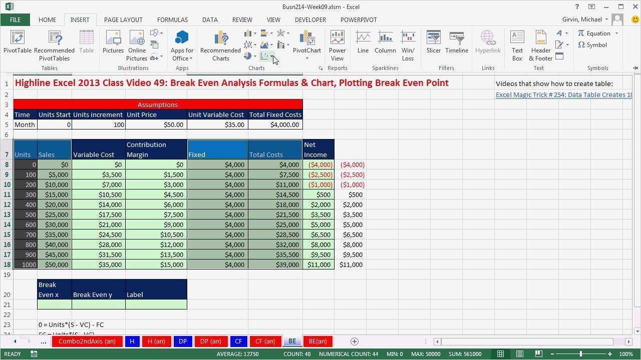 Galerie von Break even Point Excel Vorlage Wunderbar Excel Line Graph Break even Point How to Do Break even