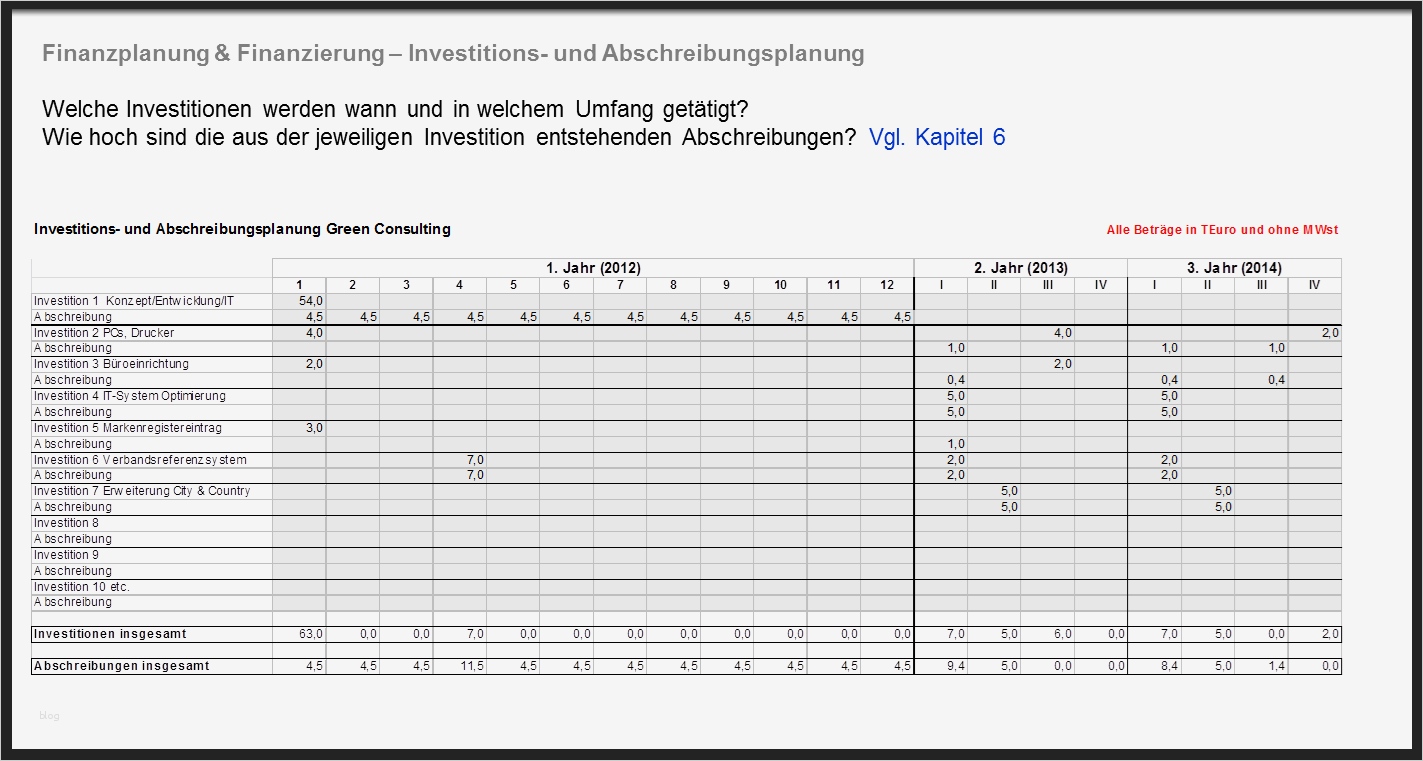 Ideen finanzplan vorlage für businessplan excel kostenlos jede finanzplan businessplan vorlage braucht eine detail Übersicht der zu tätigenden investitionen diese sind anlagevermögen welches über eine frist von meist 4 jahren abgeschrieben wird erst abschreibungen fließen als kosten ein dennoch verringern alle investitionen liquidität was gehört in den finanzplan ihres businessplans finanzplan das herzstück im businessplan für jede gründung ein zentrales kapitel im businessplan ist der finanzplan dieser stellt unternehmensentwicklung in zahlen dar und gibt damit aufschluss ob sich ihr vorhaben lohnt finanzplan & businessplan mit excel erstellen kostenlos vorlagen & muster für ihren businessplan & finanzplan anleitung für ihren businessplan finanzplan mit hilfe ser vorlage für microsoft excel erstellen sie einen umfassenden businessplan um ihren banken oder lieferanten informationen über ihr unternehmen geben zu können