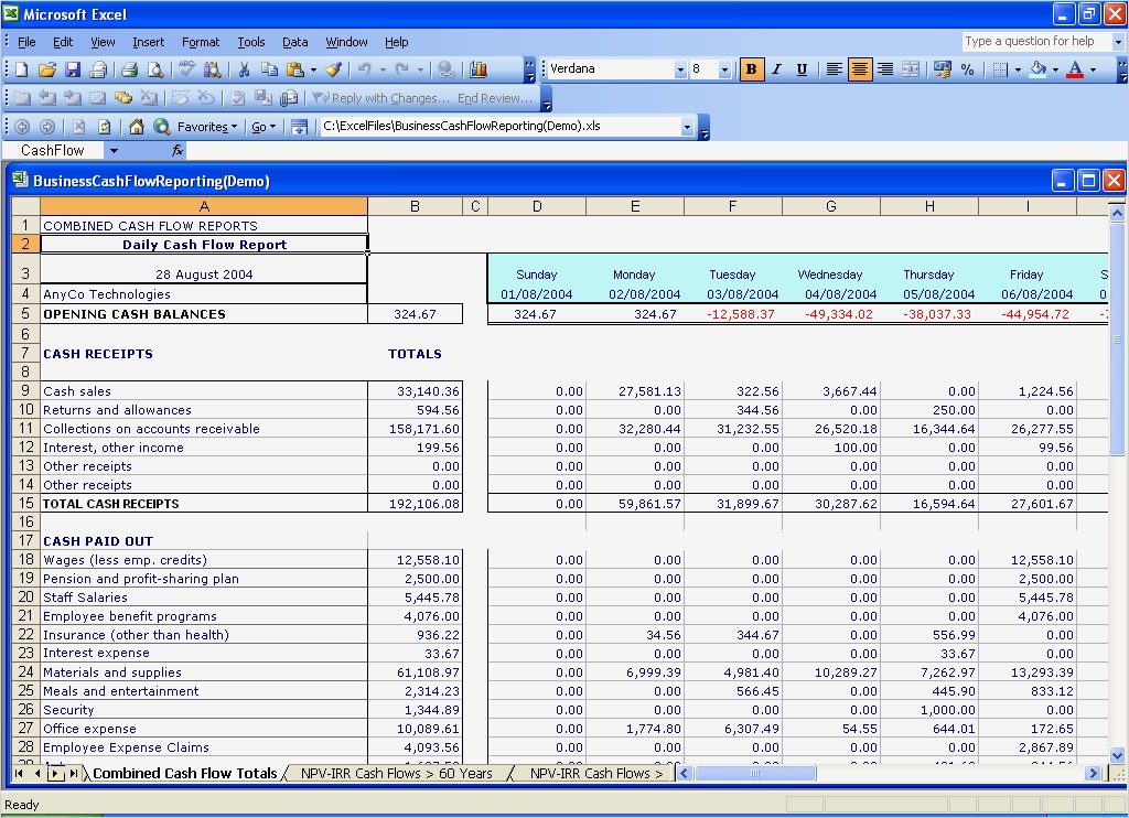 Modelle cashflow in excel kostenlose excel vorlage zum berechnen des cashflows falls sie den cashflow ihres unternehmens in einigen einfachen schritten berechnen wollen können sie s mit hilfe unser kostenlosen excel vorlage sie weiter unten herunterladen können mühelos tun cashflow rechnung mit excel lecturio für excel kann man den cashflow aus finanzierungstätigkeit wie folgt berechnen b25 = b20 – b21 b22 – b23 zusammenführung der cashflow größen abschließend kann man verschiedene cashflow werte zusammenführen und eine perspektive auf den finanzmittelbestand am ende der periode gewinnen cash flow analysis excel vorlage homeppt der cash flow analysis excel vorlage ist eine einfache aber fantastische vorlage sie analysieren können bericht visualisieren und ihre cash flow daten präsentieren