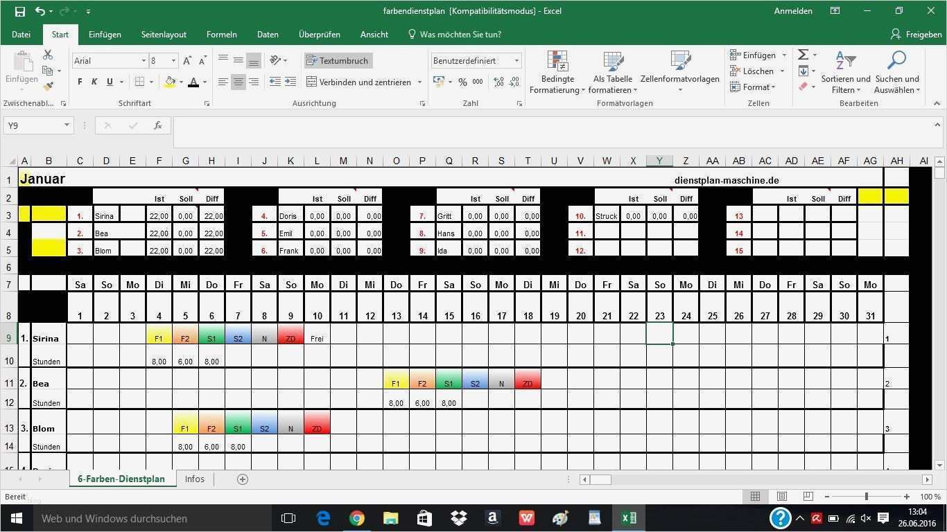 Wunderbar Dienstplan Excel Vorlage Kostenlos