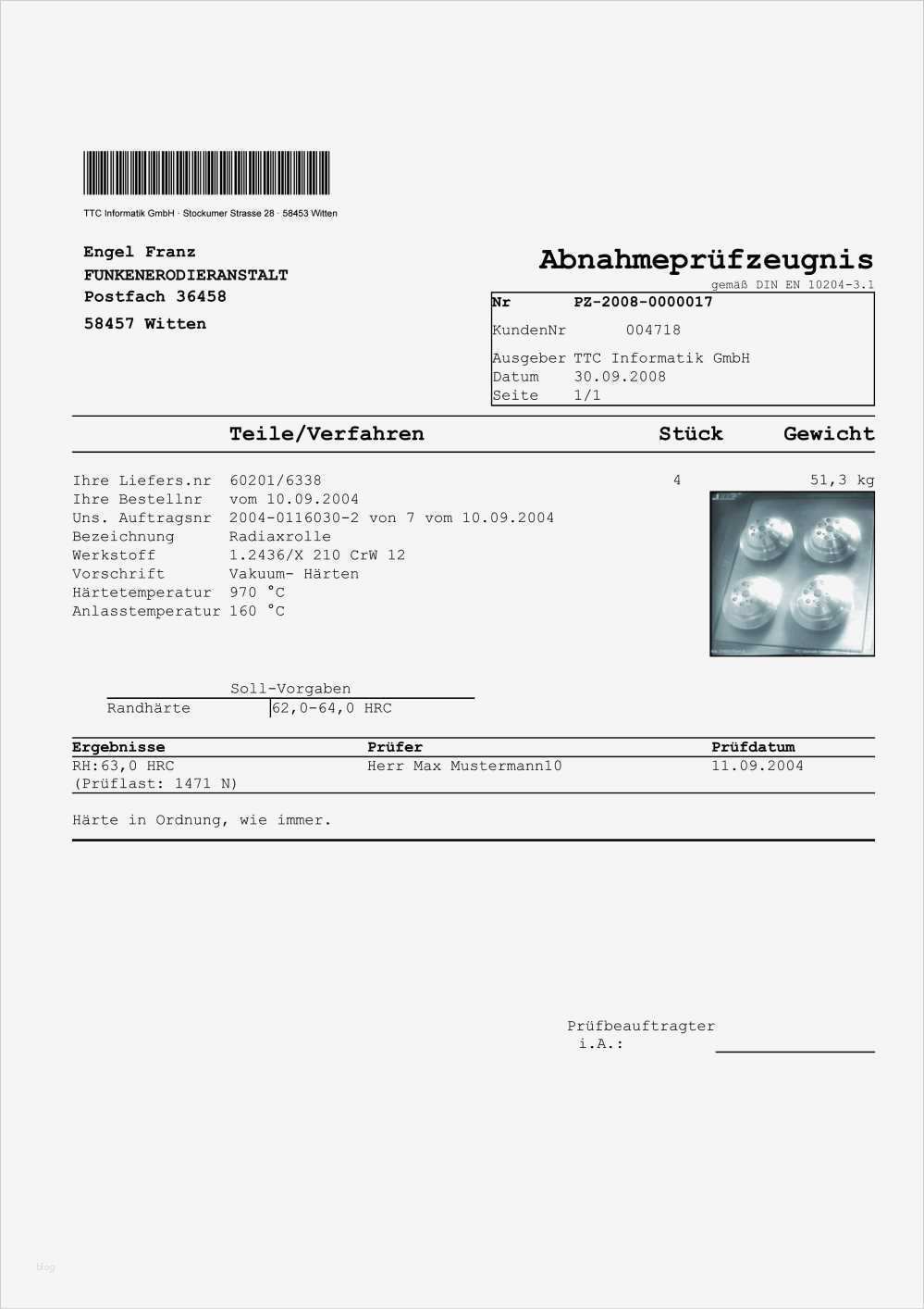 Din En 10204 Werkszeugnis 2.2 Vorlage Hübsch Demig