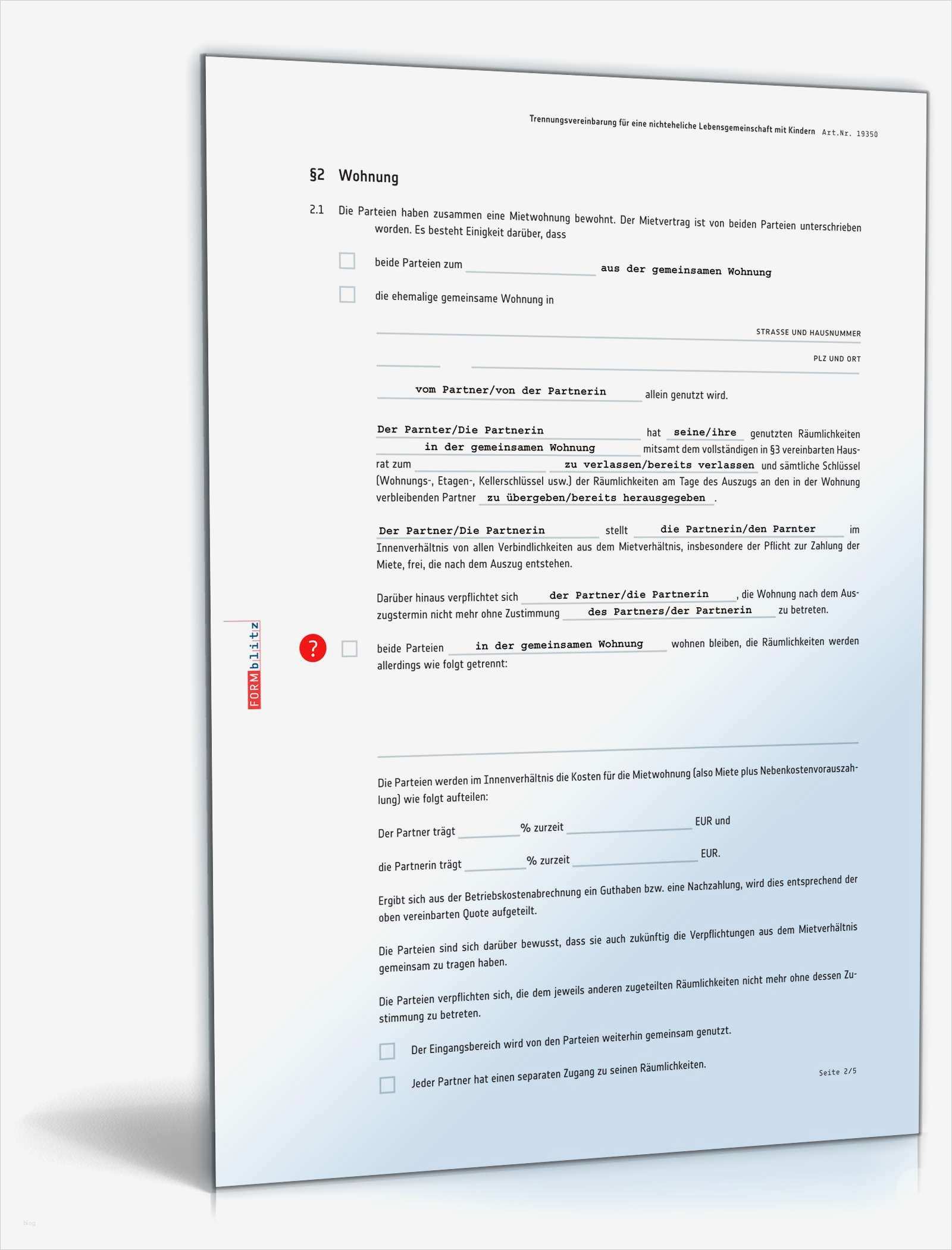 Ehe Und Erbvertrag Vorlage Fabelhaft Trennungsvereinbarung Mit Kindern