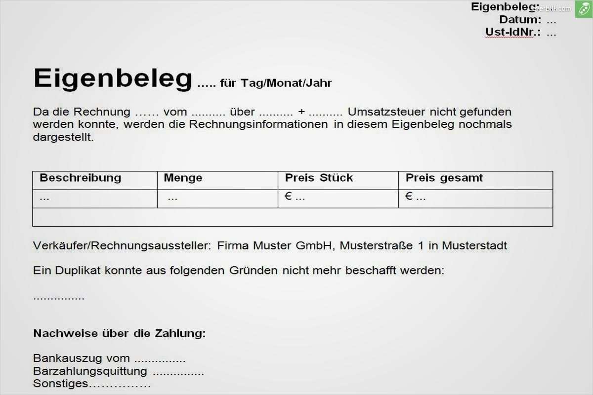 Erstaunlich Eigenbeleg Vorlage Pdf