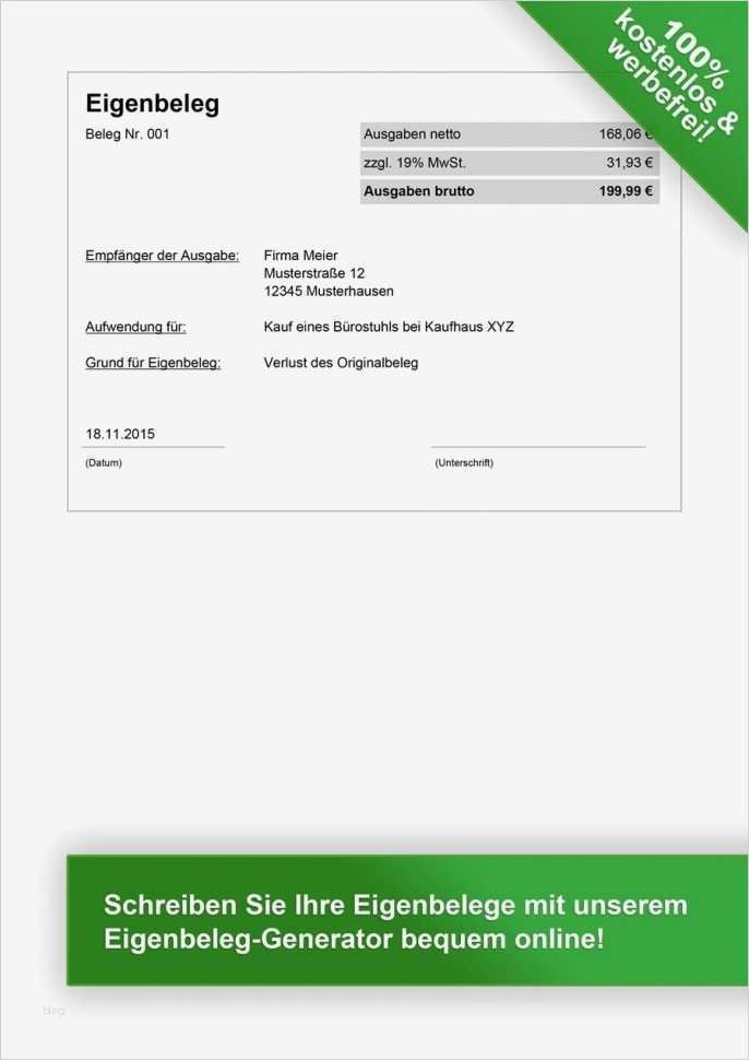 Fabelhaft Eigenbeleg Vorlage
