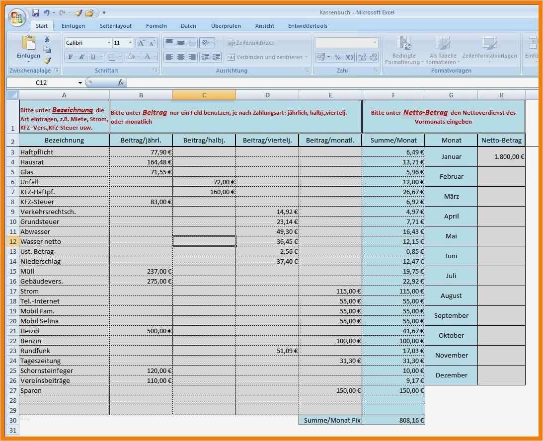 Cool Einfaches Kassenbuch Excel Vorlage