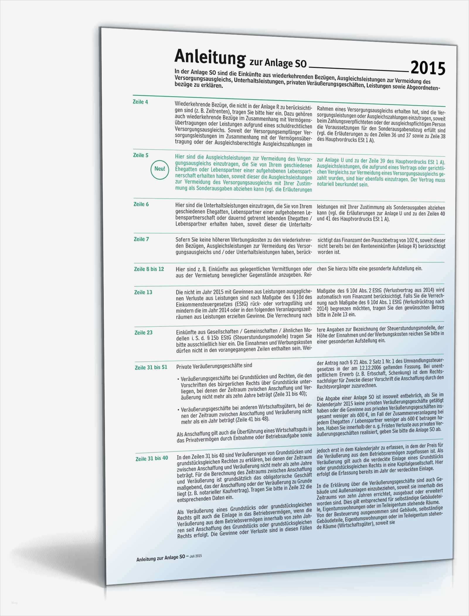 Einkommensteuererklärung Vorlage Inspiration Anleitung Zur Anlage so 2015