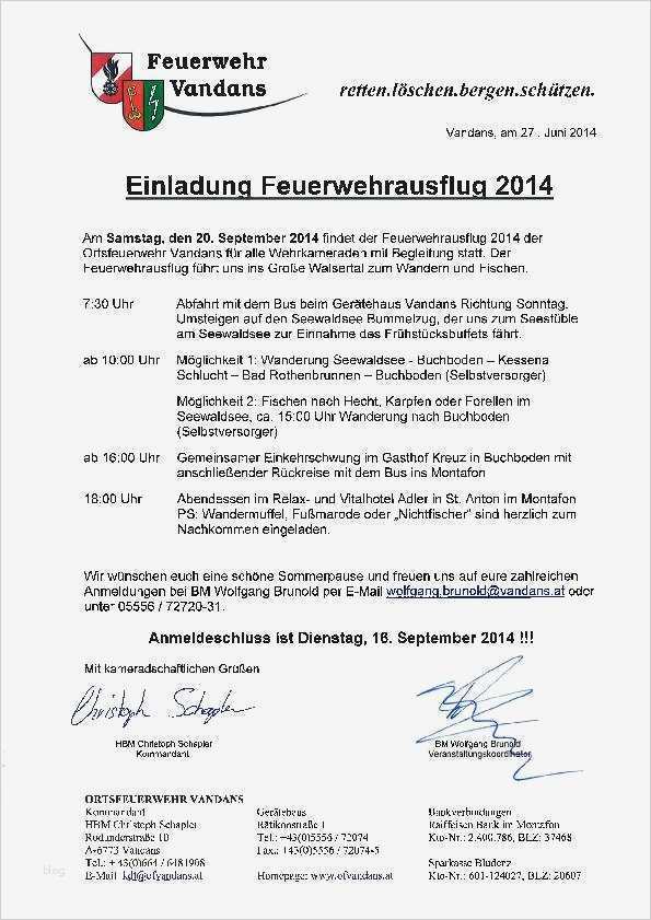Einladung Ausflug Vorlage Hübsch Of Vandans Einladung Zum Feuerwehrausflug 2014