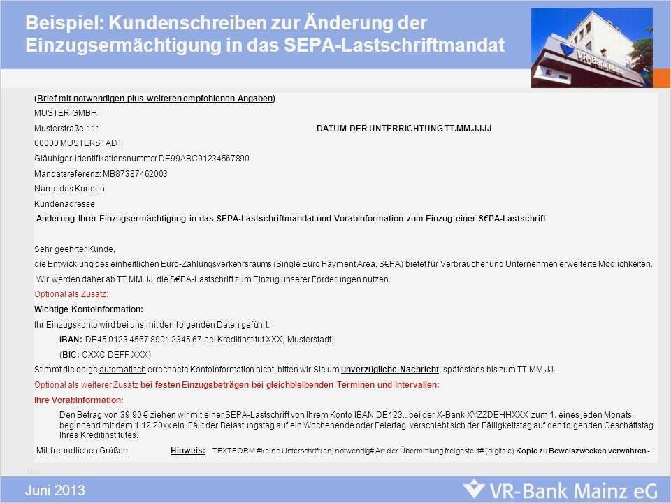 Ideen erteilung einer einzugsermächtigung und eines sepa erteilung einer einzugsermächtigung und eines sepa lastschriftmandats name und anschrift des zahlungsempfängers gläubiger wiederkehrende zahlungen recurrent payments sepa mustervorlagen freisinger bank eg volksbank musterschreiben „zahlungsempfänger an zahler über den wechsel von einzugsermächtigung auf sepa basis lastschrift mit pre notification" download word datei sepa einzugsermächtigung iban sepa einzugsermächtigung rechtzeitig vor umstellung des gesamten zahlungsverkehrs der banken auf iban und bic sollten unternehmen und verbraucher prüfen ob einzugsermächtigungen umgestellt werden müssen