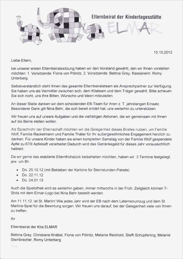 Fabelhaft Elternbrief Vorlage