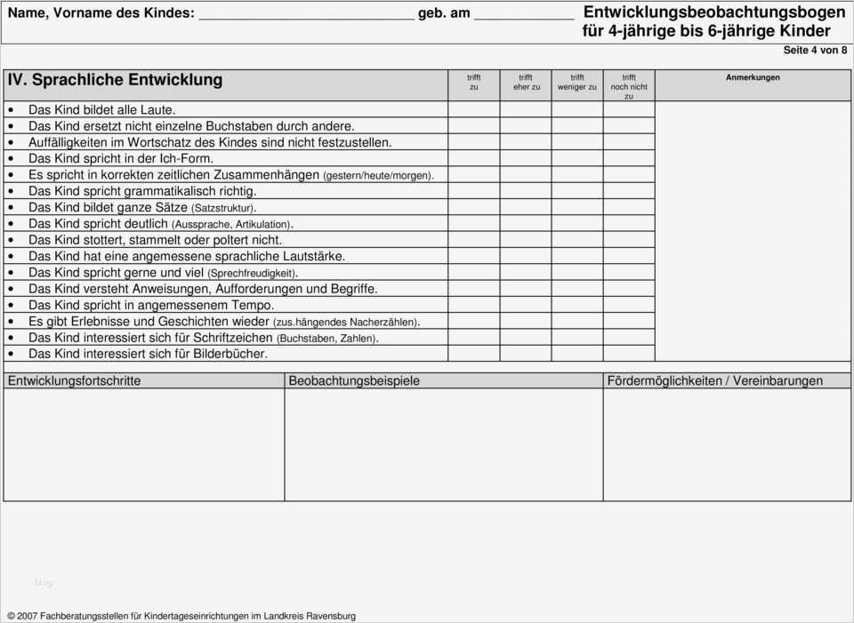Entwicklungsbogen Kindergarten Vorlage Großartig Ravensburger Bogen Zur Entwicklungsbeobachtung Von 4
