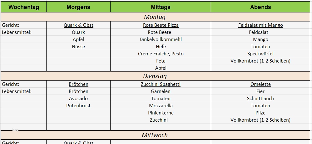 Luxus Ernährungsplan Vorlage