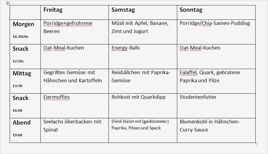 Luxus Ernährungsplan Vorlage
