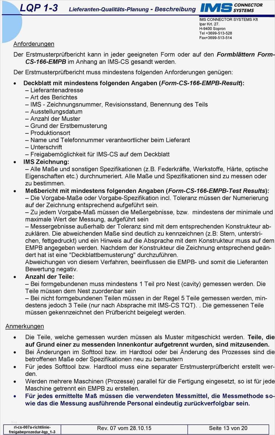 Erstmusterprüfbericht Vorlage Wunderbar Lqp 1 3 Lieferanten Qualitäts Planung Beschreibung Pdf