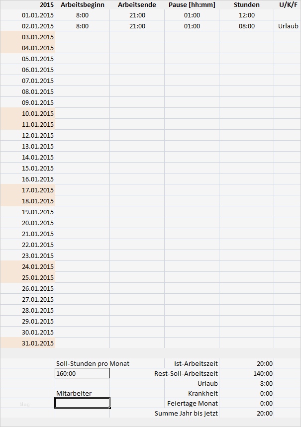 Excel Arbeitsstunden Berechnen Vorlage Neu Arbeitszeit Mit Excel Erfassen Unabhängig Vom Jahr