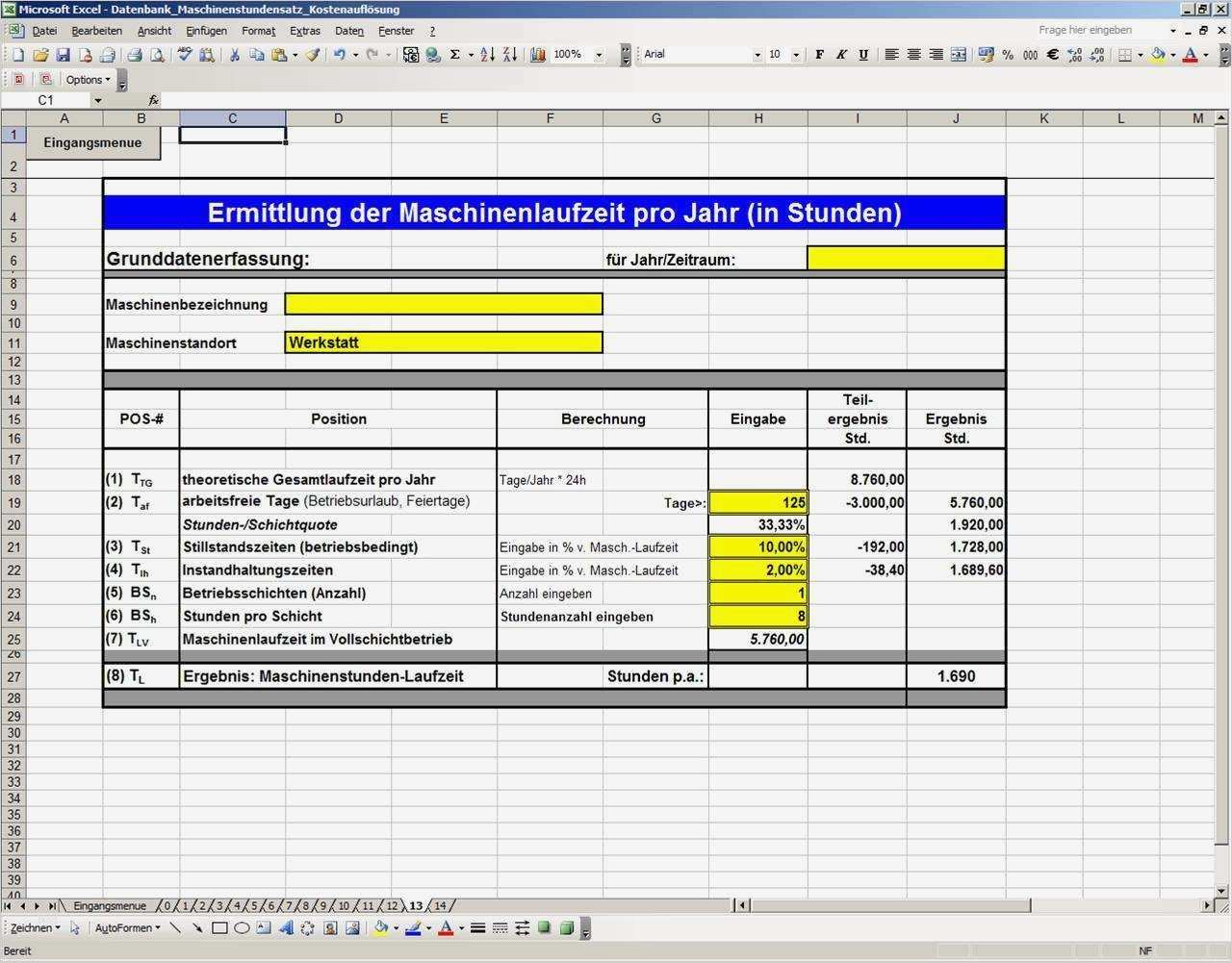 Excel Diagramm Vorlagen Kostenlos Bewundernswert Maschinenstundensatzkalkulation In Excel Excel Vorlagen Shop
