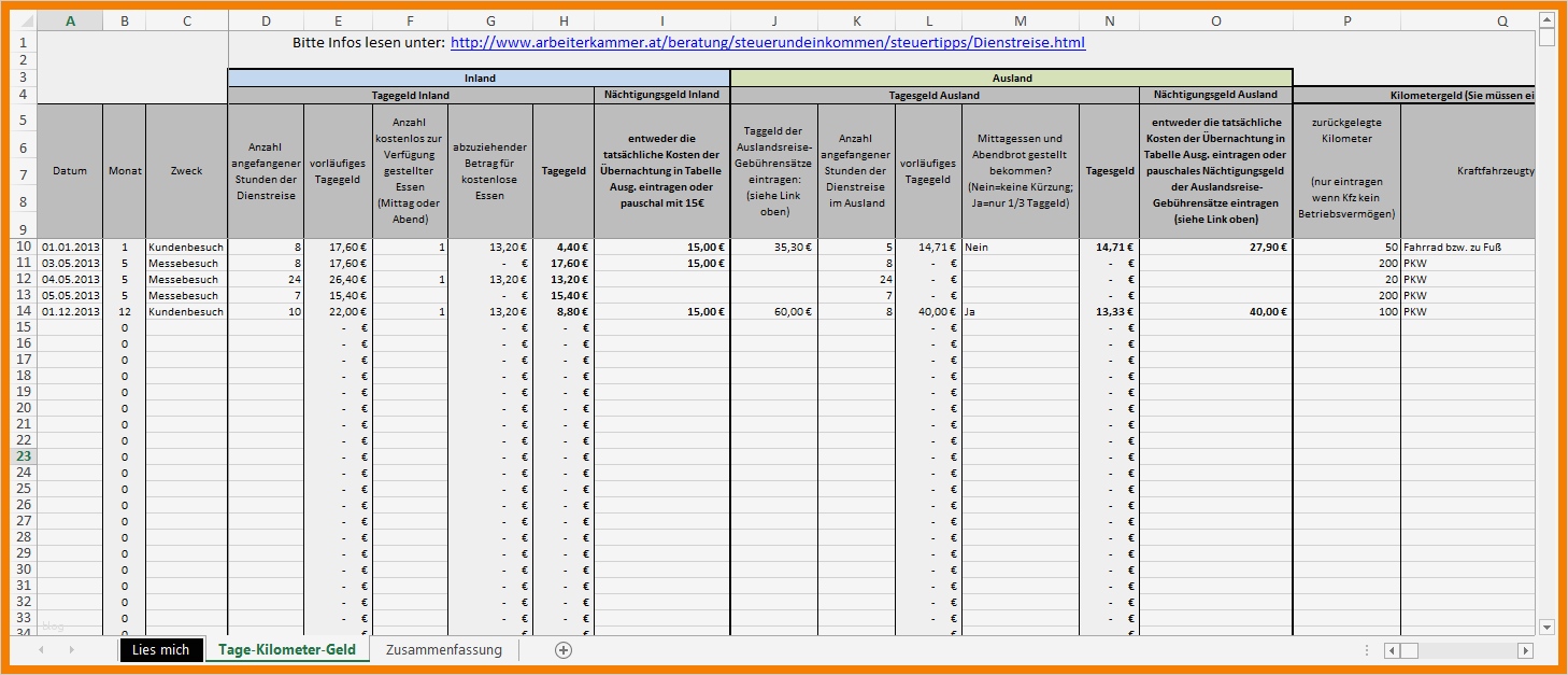 Bewundernswert Excel Reisekostenabrechnung Vorlage